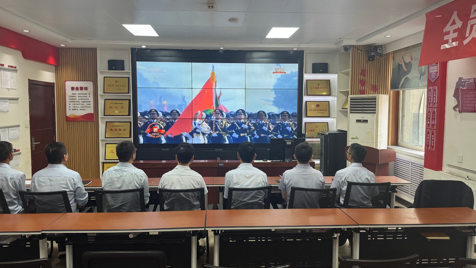 歷史燭照未來,精神永續(xù)傳承。為深切緬懷在抗日戰(zhàn)爭中英勇獻(xiàn)身的革命先烈,大力弘揚(yáng)偉大的抗戰(zhàn)精神,引導(dǎo)全體黨員、職工銘記光輝歷史、堅(jiān)定理想信念、強(qiáng)化責(zé)任擔(dān)當(dāng),9月3日,機(jī)運(yùn)工區(qū)黨支部組織開展了“銘記歷史偉業(yè),傳承紅色基因”主題黨日活動(dòng),組織全體黨員集中觀看紀(jì)念中國人民抗日戰(zhàn)爭暨世界反法西斯戰(zhàn)爭勝利80周年閱兵儀式現(xiàn)場直播。上午九時(shí)整,機(jī)運(yùn)工區(qū)全體黨懷著無比崇敬與激動(dòng)的心情,目光齊聚屏幕。伴隨著激昂雄壯的國歌奏響,鮮艷的五星紅旗在天安門廣場冉冉升起,大家心潮澎湃,肅然起敬。隨后,規(guī)模宏大、氣勢(shì)磅礴的閱兵式正式開始。屏幕上,一個(gè)個(gè)整齊劃一、威武雄壯的徒步方隊(duì),邁著鏗鏘有力、撼人心魄的步伐走過檢閱臺(tái),堅(jiān)毅的眼神、挺拔的身姿,充分展現(xiàn)了新時(shí)代軍人聽黨指揮的忠誠品格和能打勝仗的過硬本領(lǐng);一列列代表著國家科技實(shí)力與國防現(xiàn)代化建設(shè)最新成果的裝備方隊(duì),鐵流滾滾,氣勢(shì)如虹,尖端武器依次亮相,彰顯了捍衛(wèi)國家主權(quán)、安全、發(fā)展利益的堅(jiān)定決心與強(qiáng)大能力;雄鷹呼嘯,劃破長空,戰(zhàn)機(jī)編隊(duì)以精準(zhǔn)的隊(duì)形和磅礴的氣勢(shì)接受檢閱,描繪出壯美的藍(lán)天畫卷,宣示著捍衛(wèi)國家領(lǐng)空安全的鋼鐵意志。整個(gè)閱兵過程,秩序井然、威武雄壯、氣勢(shì)恢宏,生動(dòng)詮釋了人民軍隊(duì)“聽黨指揮、能打勝仗、作風(fēng)優(yōu)良”的強(qiáng)軍目標(biāo),全方位展示了在黨的堅(jiān)強(qiáng)領(lǐng)導(dǎo)下,國家日益強(qiáng)大的綜合國力和維護(hù)世界和平的堅(jiān)定信念。屏幕前,黨員們?nèi)褙炞?,無不被這震撼人心的場面所感染,民族自豪感與榮譽(yù)感油然而生,現(xiàn)場不時(shí)響起由衷的贊嘆和熱烈的掌聲。通過本次“銘記歷史偉業(yè),傳承紅色基因”主題黨日活動(dòng),機(jī)運(yùn)工區(qū)黨支部全體黨員經(jīng)歷了一次深刻的精神淬煉與思想升華。大家的歷史使命感、民族自豪感、崗位責(zé)任感得到顯著增強(qiáng),紛紛表示以更加飽滿昂揚(yáng)的精神狀態(tài)、更加求真務(wù)實(shí)的工作作風(fēng)、更加開拓創(chuàng)新的進(jìn)取意識(shí),恪盡職守,銳意進(jìn)取,全力以赴保障原煤運(yùn)輸安全高效,為工區(qū)及公司的持續(xù)高質(zhì)量發(fā)展貢獻(xiàn)全部力量!